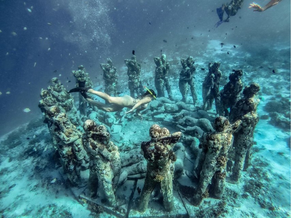 Por la mañana, excursión en barco privado por las islas Gili desde Gili Air, dondré haréis esnórquel entre tortugas marinas, corales, estatuas submarinas y peces de colores y visitaréis las playas paradisíacas con aguas de color azul turquesa de Gili Trawangan, Gili Meno y Gili Air.